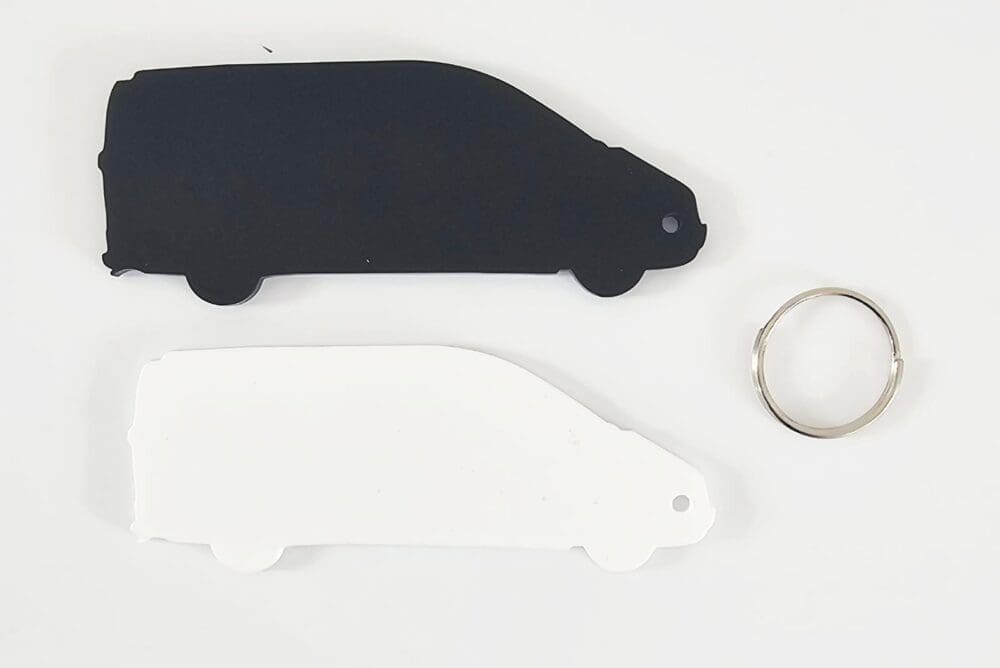 Laser Acrylic Shapes : BLACK or WHITE Van Keychain with split keyring