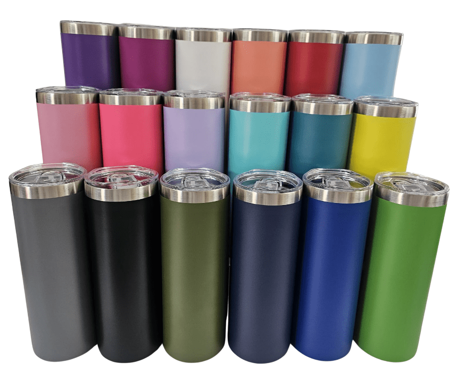 The 20oz straight silver-rimmed powder-coated tumbler is a versatile and stylish choice for beverage enthusiasts. Available in a 18 colours, it caters to personal style while providing practical functionality. The double-walled, vacuum insulation is designed to maintain the temperature of both hot and cold drinks for extended periods, ensuring your beverage remains at your preferred temperature. The inclusion of both a plastic and metal straw offers options for sipping convenience, while the black rubber coaster prevents surface damage and provide stability. The sealable, leakproof, BPA-free lid adds an extra layer of security, making it an ideal companion for both indoor and outdoor activities. Whether you’re enjoying a hot coffee on a chilly morning or sipping a cold lemonade on a sunny day, this tumbler is engineered to enhance your drinking experience.